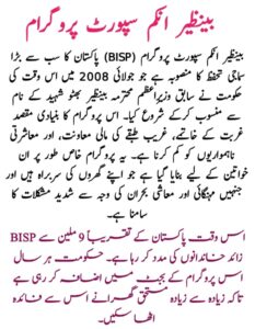 Benazir Income Support Programme (BISP) 2025. Launched in July 2008, the Benazir Income Support Programme (BISP) stands as Pakistan’s flagship social safety-net initiative. Designed to protect the most vulnerable households from economic shocks, the program not only delivers cash assistance but also advances women’s empowerment, school attendance, health access and social inclusion. bisp.gov.pk+1
